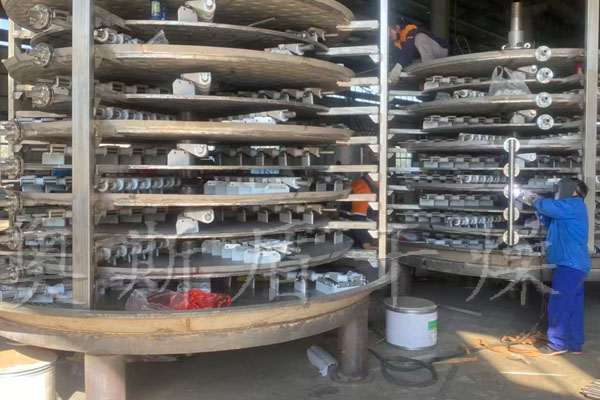 轴上密集排列着楔型中空浆叶,热介质经空心轴流经浆叶。单位有效容积内传热面积很大,热介质温度从-40℃到320℃,可以是水蒸汽,也可以是液体型:如热水、导热油等。间接传导加热,没有携带空气带走热量,热量均用来加热物料。热量损失仅为通过器体保温层向环境的散热。楔型浆叶传热面具有自清洁功能。物料颗粒与楔型...